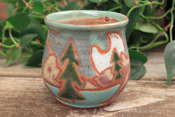 On my 10th birthday, my family drove north along the rocky, rugged coast of Maine, weaving in and out of small fishing towns, to Acadia National Park. It was an adventure full of hiking and icy ocean swims and blueberry pie and I will always love the wild world of coastal Maine. This mug design is in honor of Acadia National Park and all the joy that part of the world has brought me. Featuring a climbing coastal cliff topped by trees and a shining lighthouse beneath a high crescent moon.