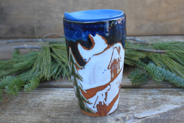 This travel mug comes with the pictured blue lid. Lid color can be changed to pink, grey, or yellow. Please *EMAIL ME* at beechstreetpottery@gmail.com to request a different color!
