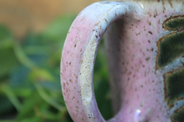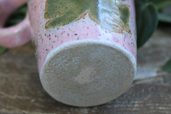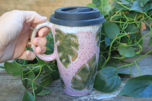 Brighten up your day with a little monstera madness! This flora filled mug in a funky new pink glaze is sure to help start your morning right! Join me in grabbing your favorite caffeinated beverage and curling up with your collection of plants. Perfect for morning coffee or evening beer, its always ready for springtime celebrations.